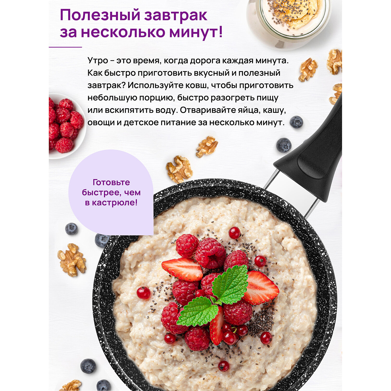 Ковш 1,5 л Elan Gallery гармония вкуса Рубиновый дуэт с крышкой D18, толстостенный из литого алюминия с двухслойным антипригарным покрытием с несъемной ручкой Идеальный подарок на Новый год Рождество День Рождения и 8 марта