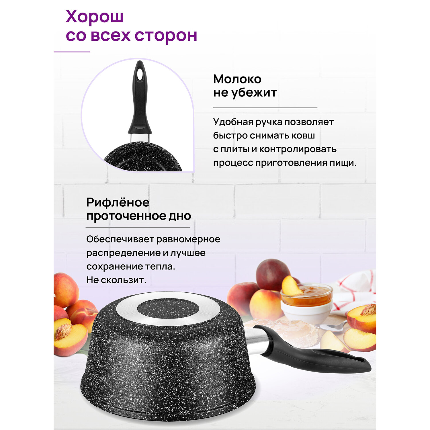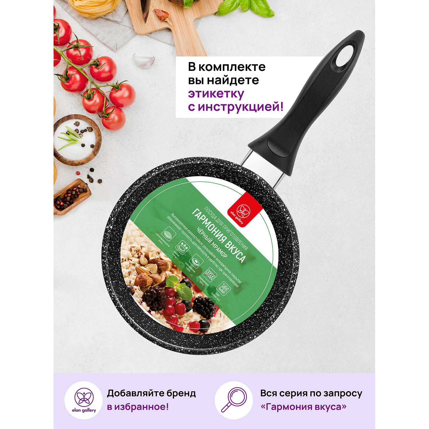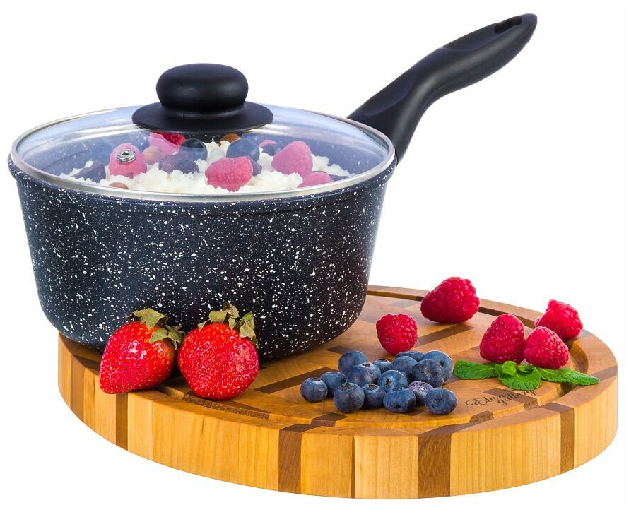 Ковш 1,5 л Elan Gallery гармония вкуса Черный мрамор ковшик кухонный с крышкой толстостенный из литого алюминия с двухслойным антипригарным покрытием с несъемной ручкой Идеальный подарок на Новый год Рождество День Рождения и 8 марта