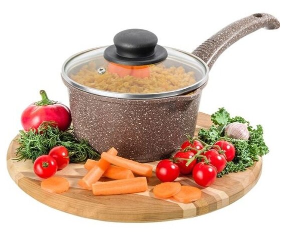 Ковш 1,5 л Elan Gallery гармония вкуса Коричневый опал ковшик кухонный с крышкой толстостенный из литого алюминия с двухслойным антипригарным покрытием с несъемной ручкой Идеальный подарок на Новый год Рождество День Рождения и 8 марта