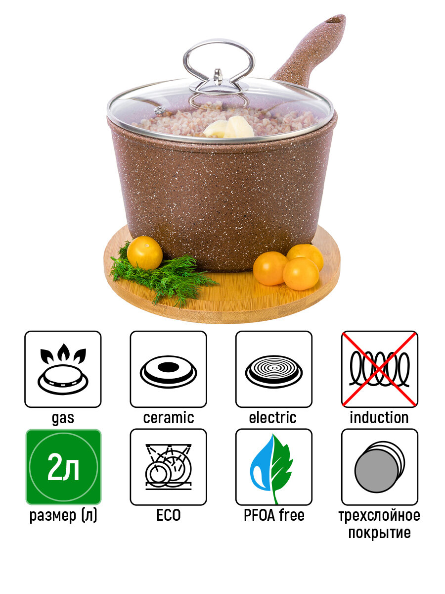 Ковш, Гранит, диаметр 18 см, с крышкой, коричневый, 2 литра