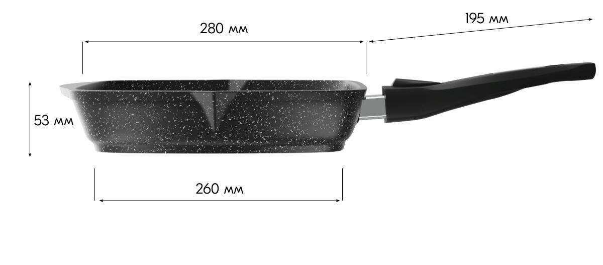 Сковорода-гриль Мечта 280 мм АП гранит BLACK со съем.руч. 068802