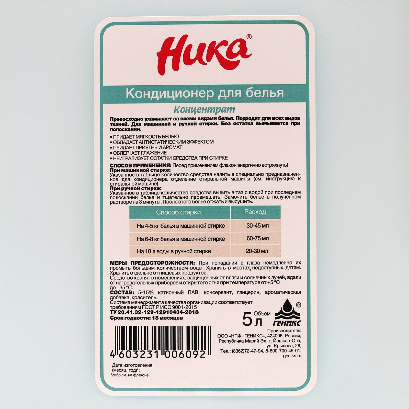 Кондиционер для белья Ника 1 л