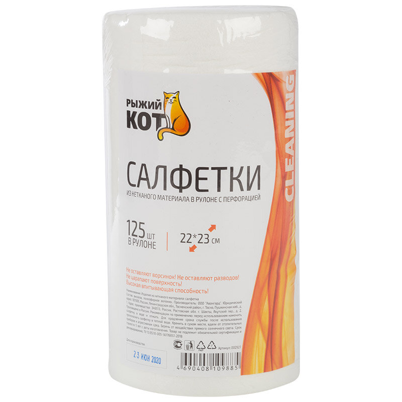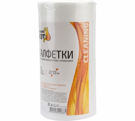 Салфетки из спанлейса в рулоне с перфорацией Рыжий кот, 22 x 23 см, 125 шт