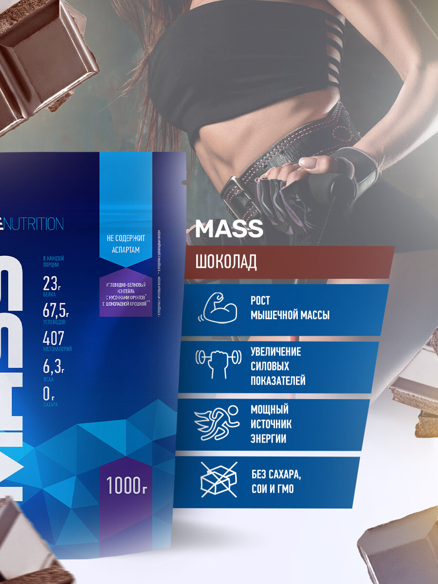 Гейнер для набора сухой мышечной массы MASS 1000 гр (R-Line Sport Nutrition) Шоколад