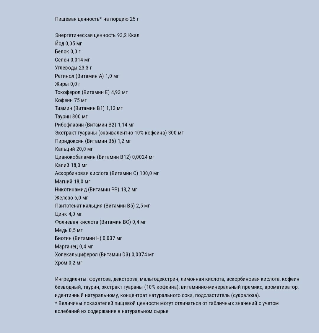 | Плюсы: | Вкус приятный, состав. Придаёт сил |