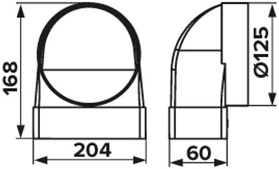 Соединитель для воздуховода угловой '620СК12,5ФП' ? 125 / 60х204