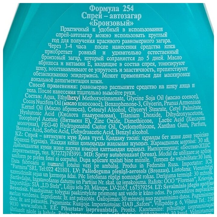 Автозагар золотистый Floresan, спрей-саше 25 мл./В упаковке шт: 1
