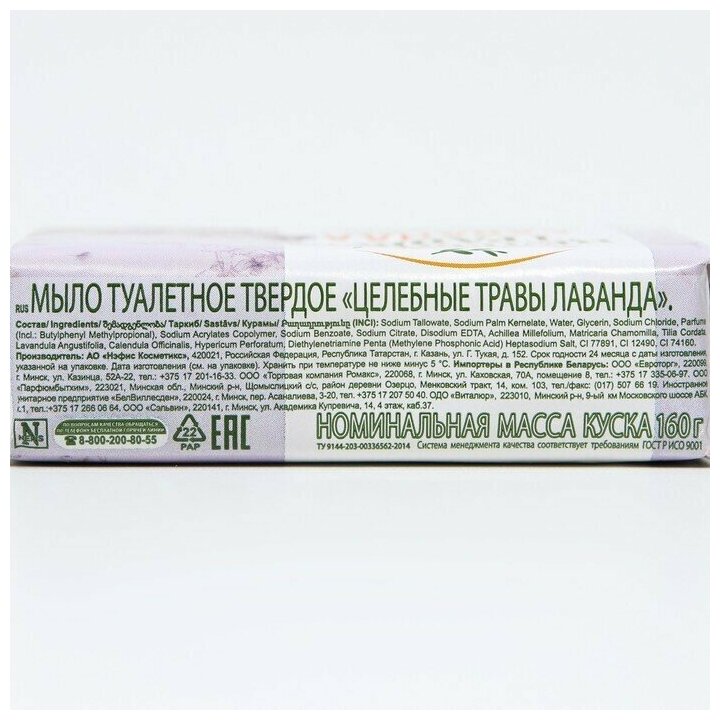 Туалетное мыло Целебные травы "Лаванда" 160 г 7546679
