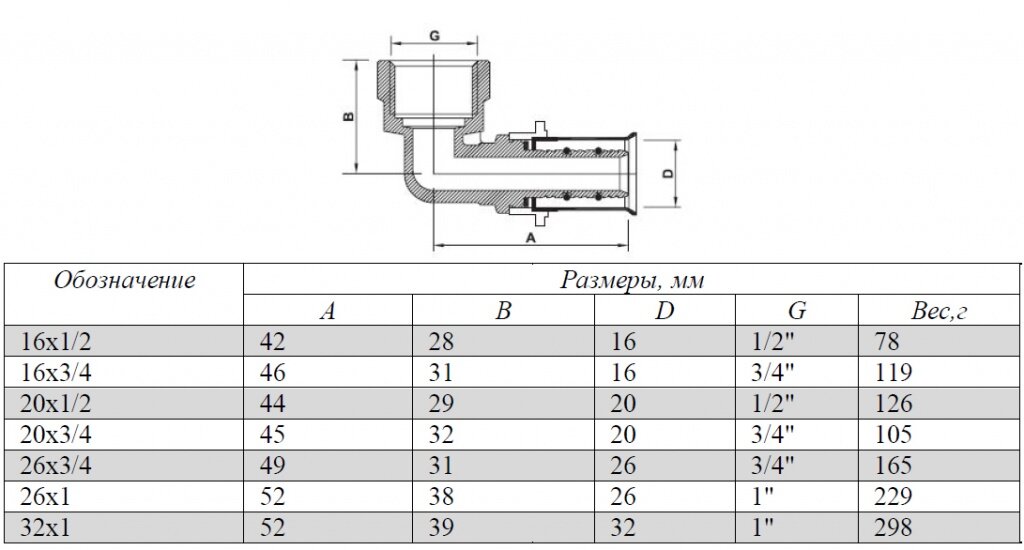 Угольник пресс VALTEC с переходом на вн. р. 26х1, VTm.252.N.002606
