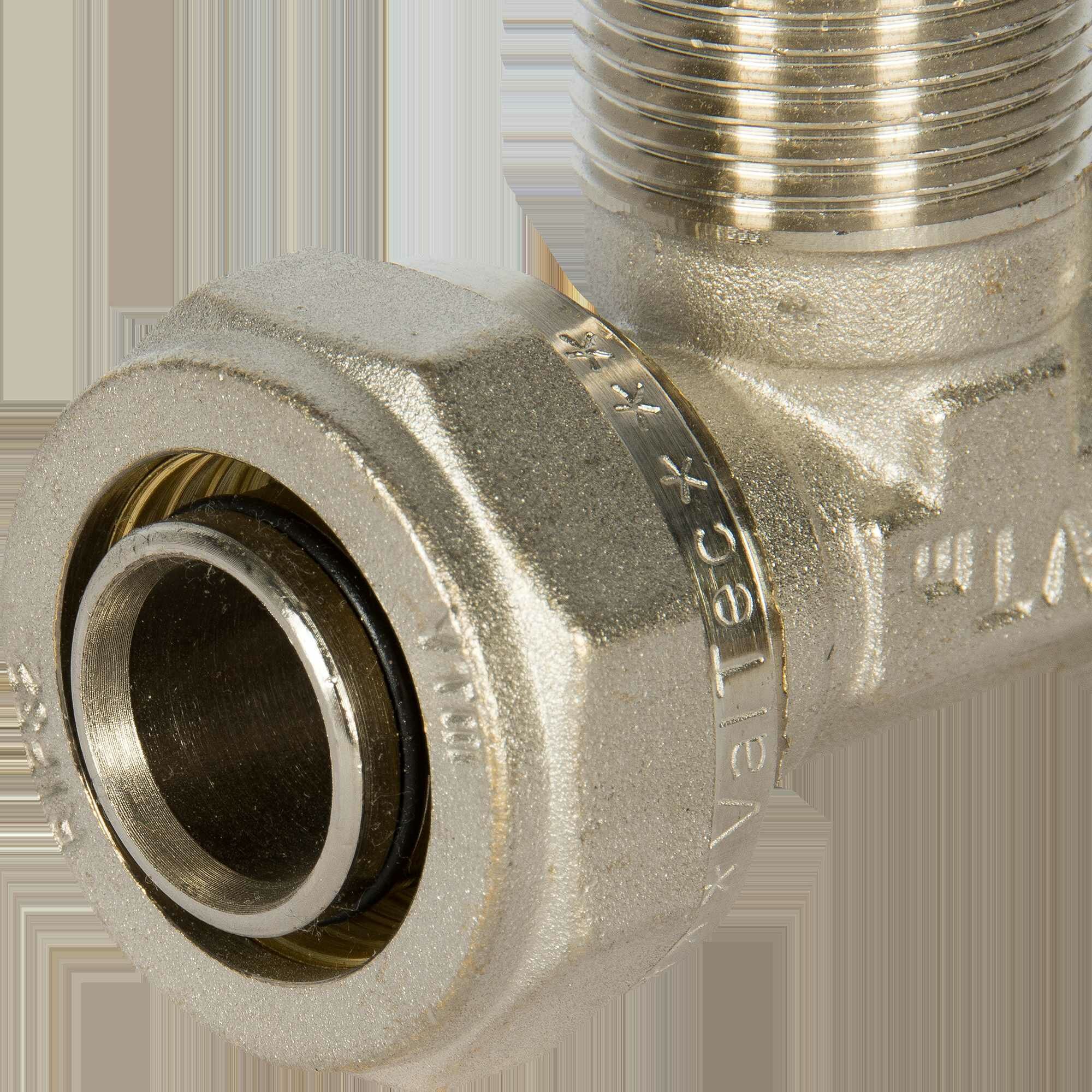 Тройник обжимной Valtec наружная резьба 20х1/2" мм никелированная латунь VTm.333.N.200420