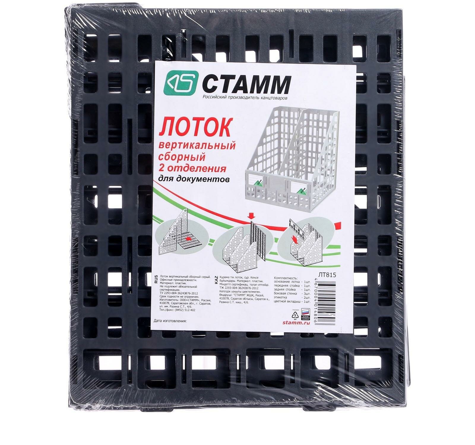 Лоток для бумаг вертикальный СТАММ, сборный, 2 отделения, черный ( Артикул 193219 )