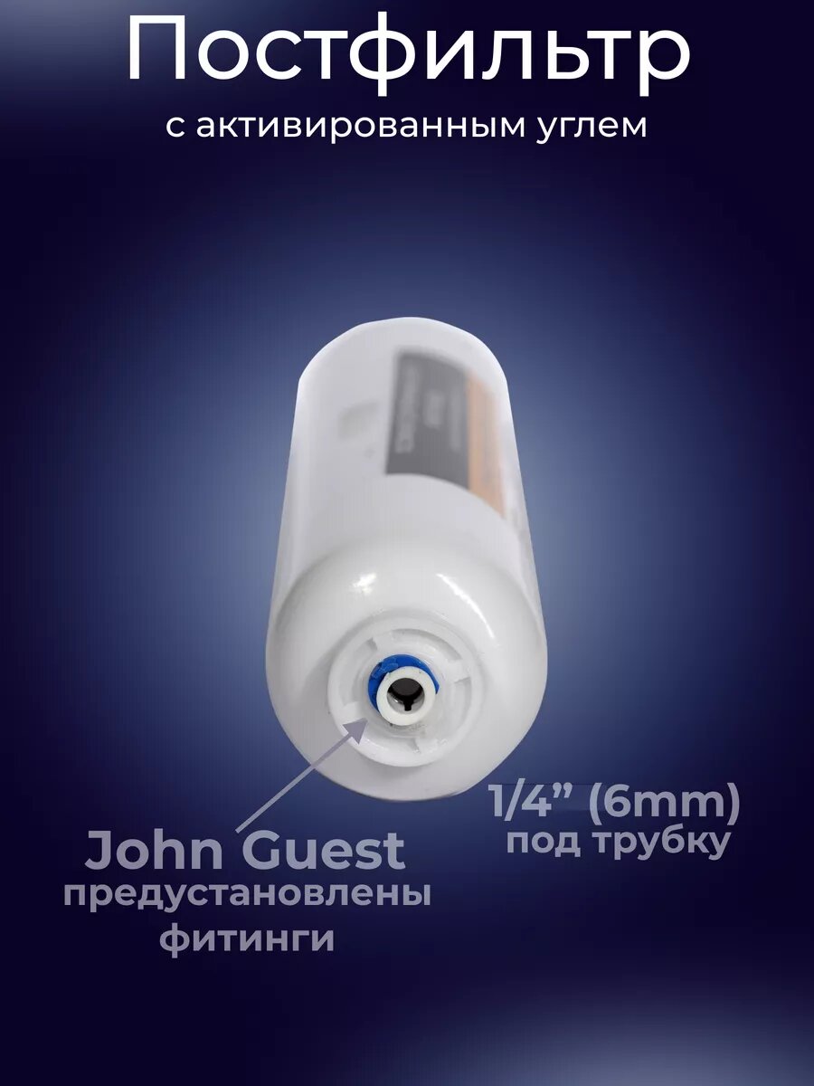 Угольный постфильтр с быстросъемным соединением подходит для всех типов осмосов