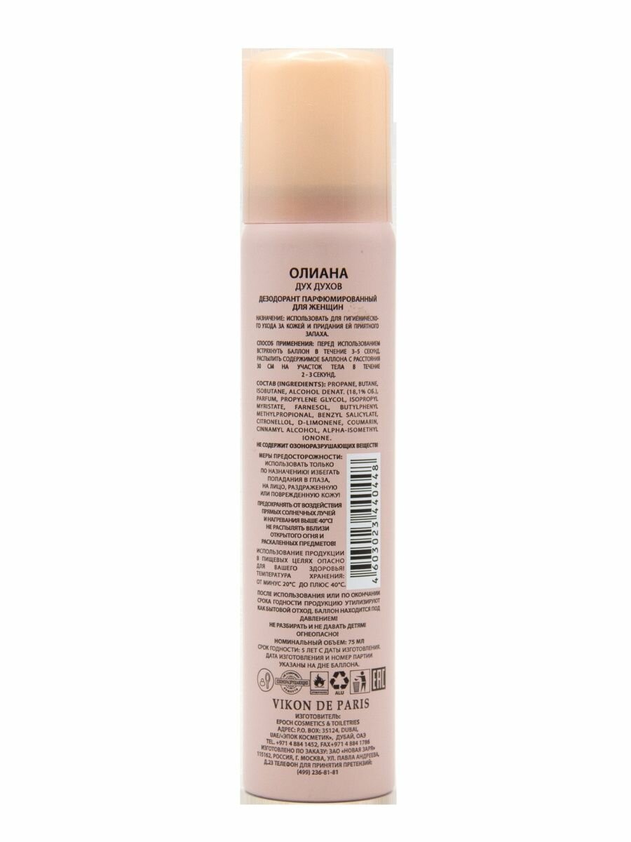 Купить Новая Заря Vikon De Paris Olyana Дезодорант аэрозольный парфюмированный для женщин Олиана 75 мл