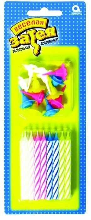 Свечи для торта Веселая затея, 24шт., с подставкой, 6см, в блистере (1502-0181)