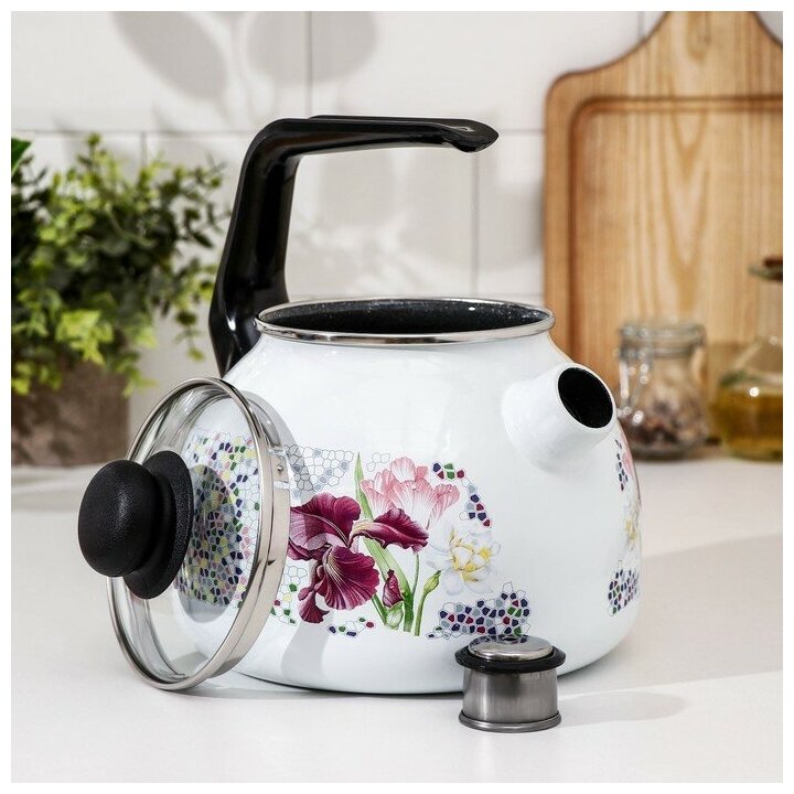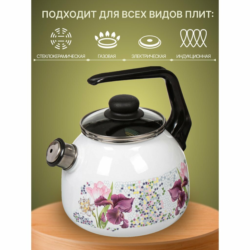 Чайник для плиты со свистком Каллы эмалированный, 3 л