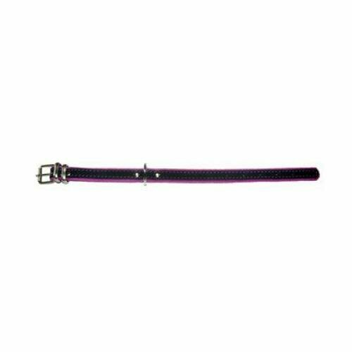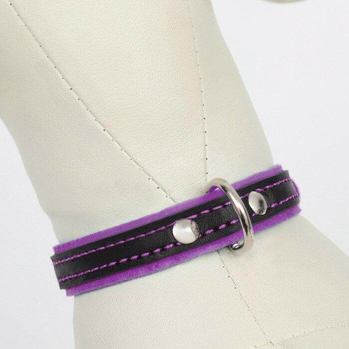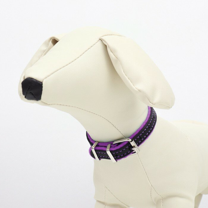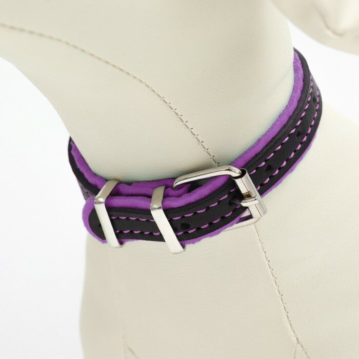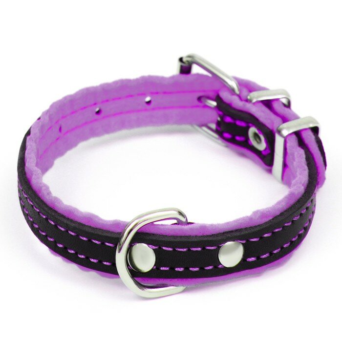 Ошейник Аркон кожаный с подкладом "Фетр", 1,6 см, ОШ 20-28 см, чёрный/фиолетовый