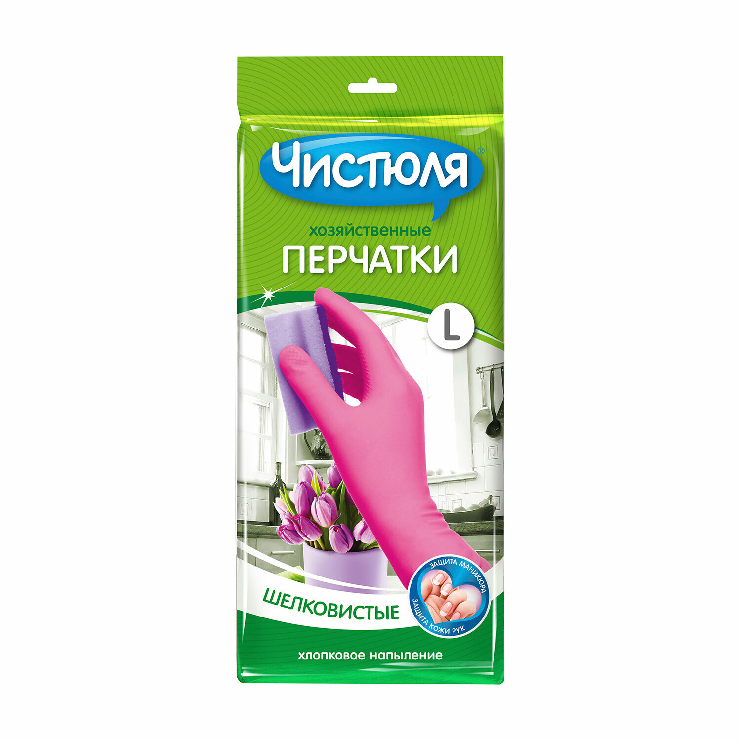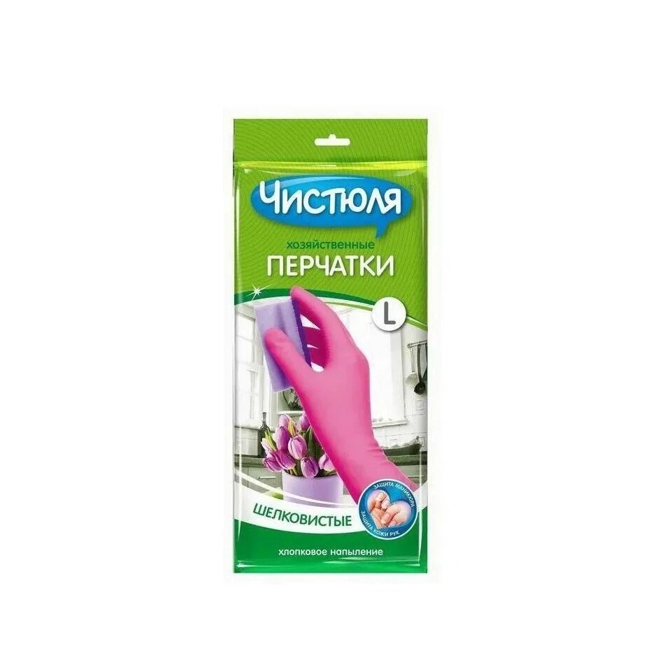 Купить Чистюля перчатки хозяйственные L(9) из латекса с хлопковым напылением (L)