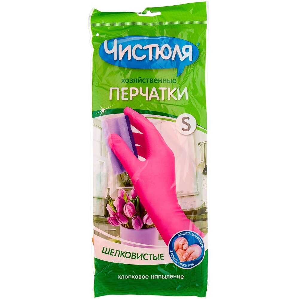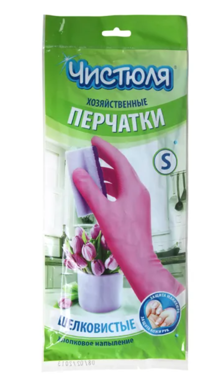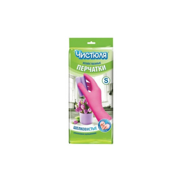 Чистюля перчатки хозяйственные S(7) из латекса с хлопковым напылением