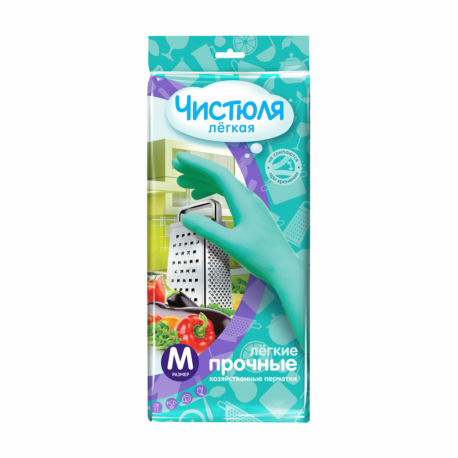Перчатки Чистюля Легкая хозяйственные легкие прочные, 1 пара, размер M, цвет бирюзовый