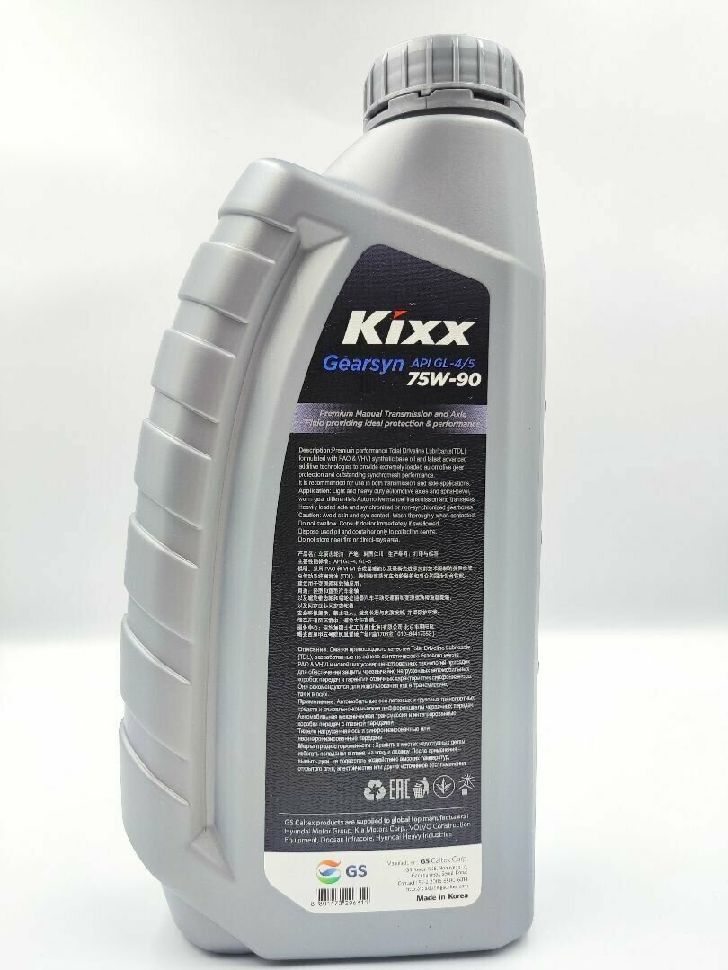 Масло трансмиссионное синтетическое KIXX Gearsyn, 75W-90, 1л [l2963al1e1]