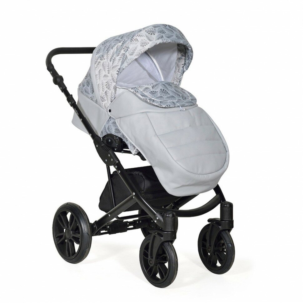 Коляска 2 В 1 Indigo Mio, Mi 03 Светло-Серая Кожа/Узор