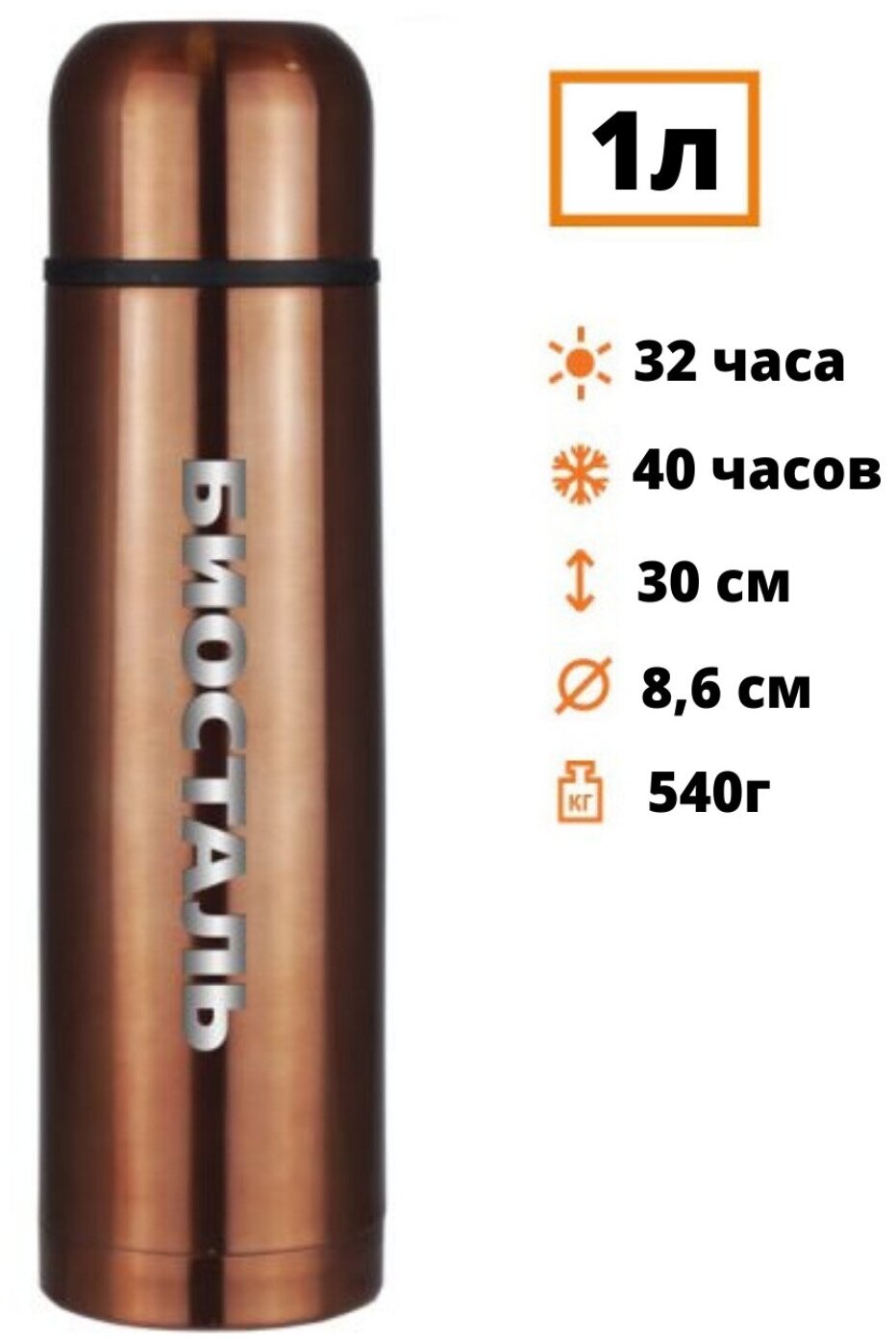 Термос Biostal (1 литр), вороненая сталь