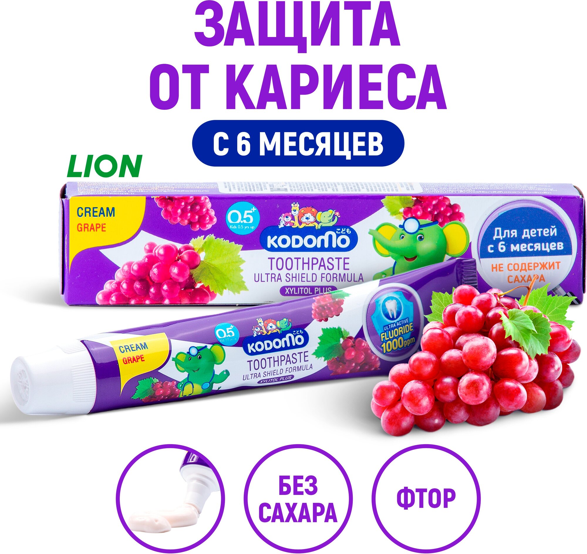 Купить Lion Паста зубная для детей с 6 месяцев с ароматом винограда - Kodomo, 40г