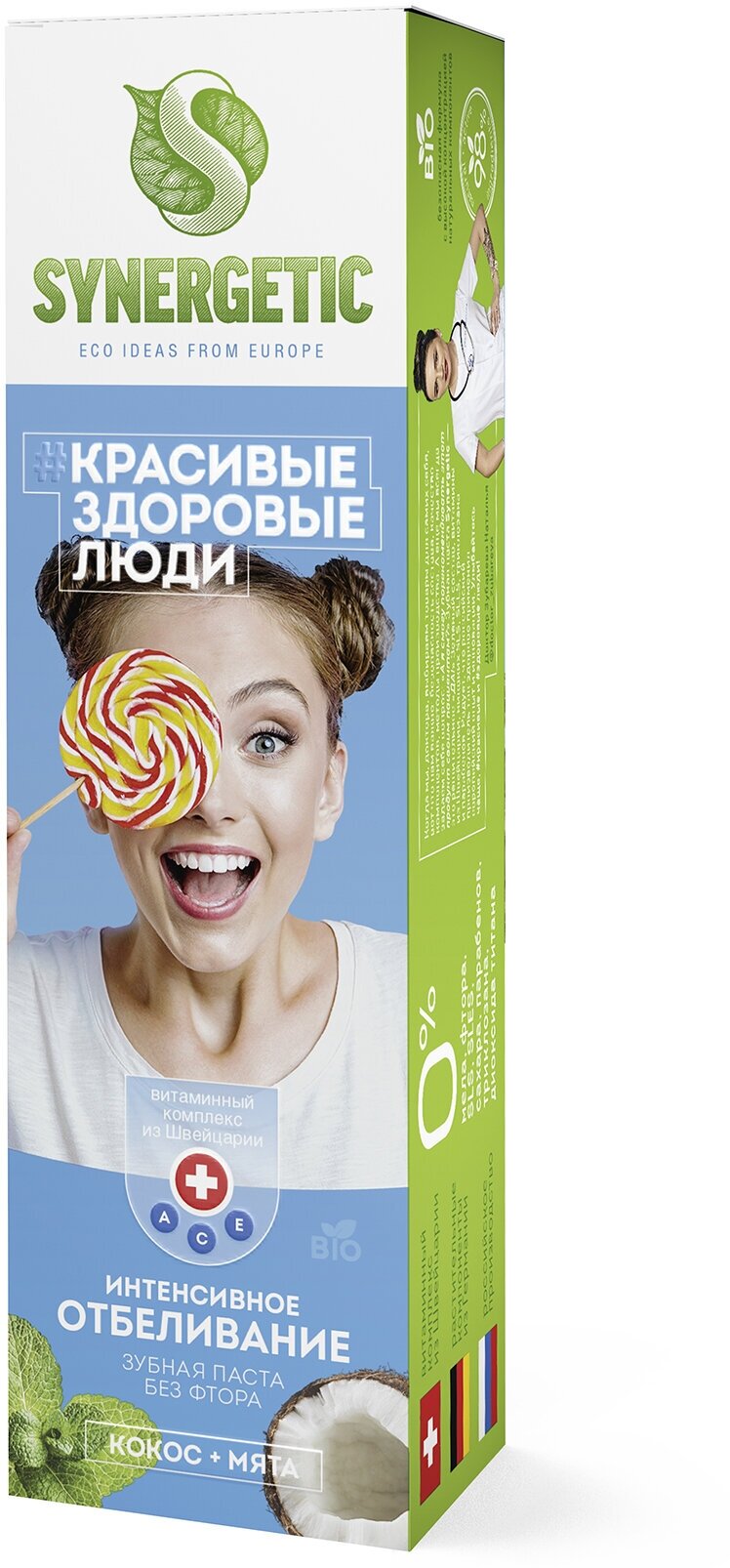 Зубная паста Synergetic Красивые здоровые люди Интенсивное отбеливание Кокос + Мята, 100 г, 4 шт.