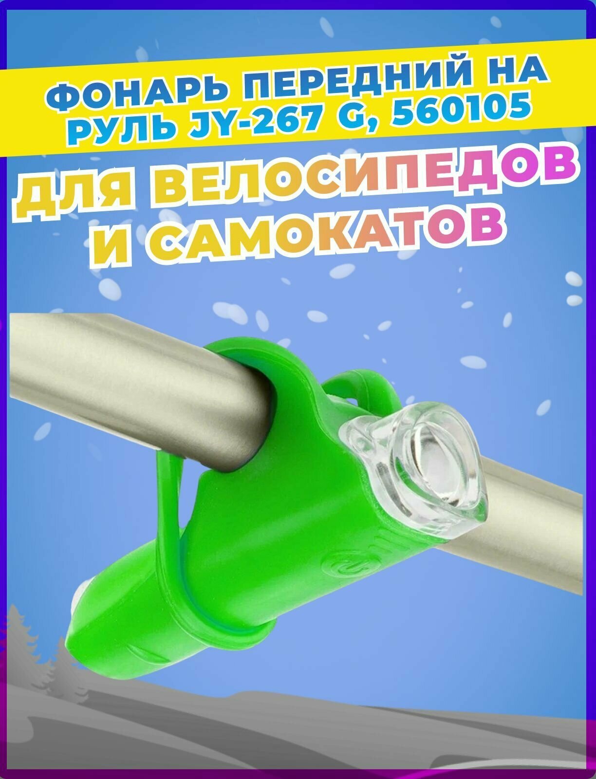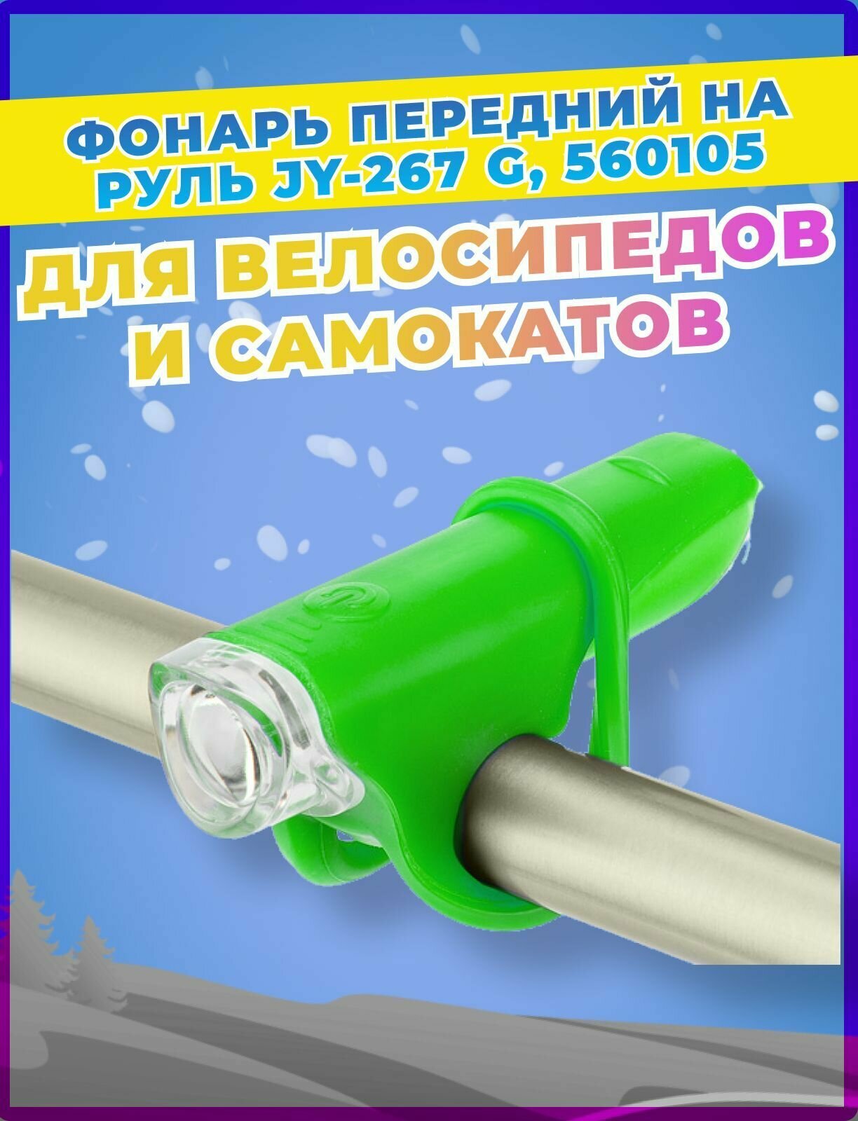 Фонарь передний STELS JY-267-G на руль, 1 суперяркий светодиод, пластиковый зелёный NEW