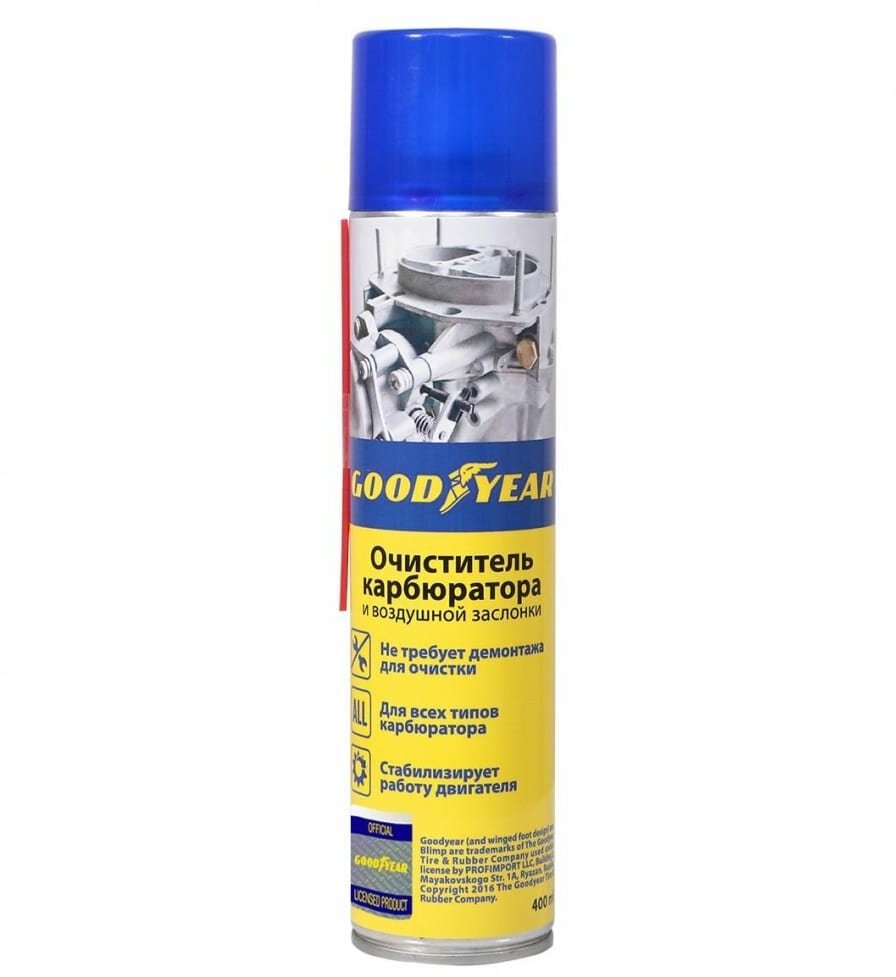 GOODYEAR GY000705 Очиститель карбюратора 400мл - эффективно и без демонтажа очищает элементы карбюратора и воздушной заслонки от всех видов углеродных отложений, аэрозоль 1шт