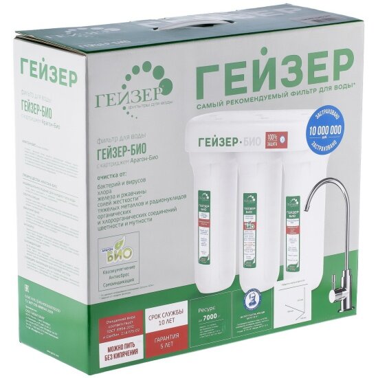 Фильтр для воды под мойку Гейзер Био 322, с краном, идеальное решение для семей с маленькими детьми, 100% удаление бактерий и вирусов, 11041