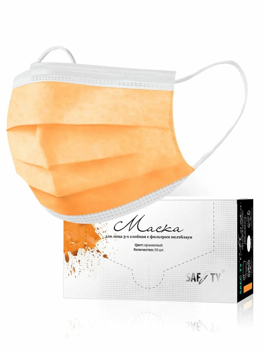 Купить Маска медицинская Safety 3-х слойная с фильтром мелтблаун, цвет оранжевый (50 шт.)