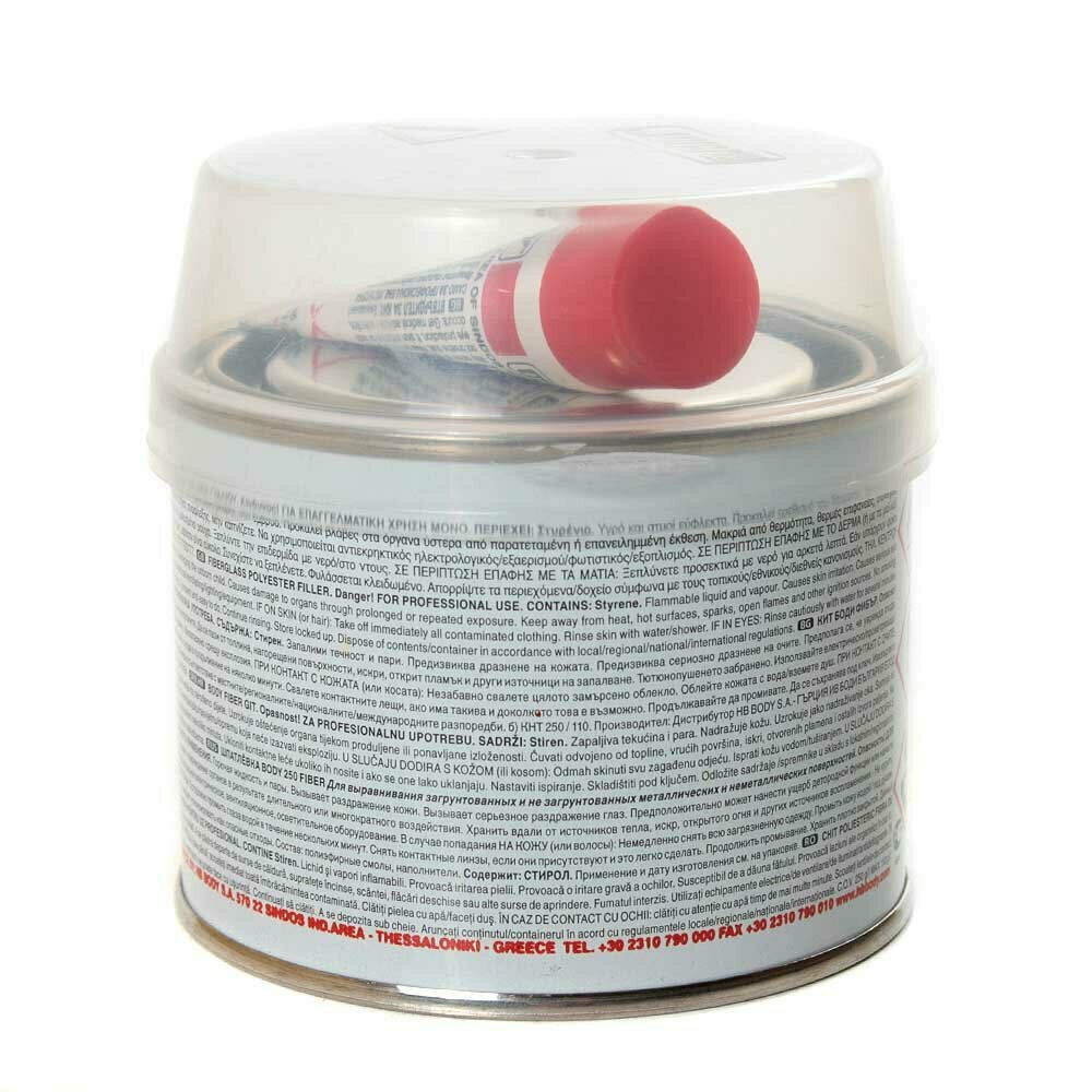 Шпатлевка со стекловолокном для кузова автомобиля HB BODY 250 FIBER 0,75 кг / 2К шпатлевка со стекловолокном / отвердитель в комплекте