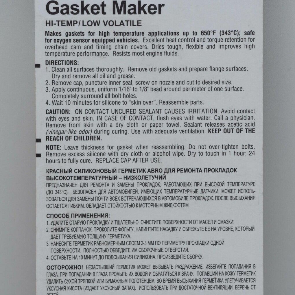 Ниже Вы можете прочитать отзывы на Герметик Силиконовый Красный 42,5 Г (Производство Сша) Abro 11-Ab-42-R ABRO арт. 11-AB-42-R, ознакомится с подробными характеристиками, посмотреть интересные обзоры и фотографии на Герметик Силиконовый Красный 42,5 Г (Производство Сша) Abro 11-Ab-42-R ABRO арт. 11-AB-42-R.