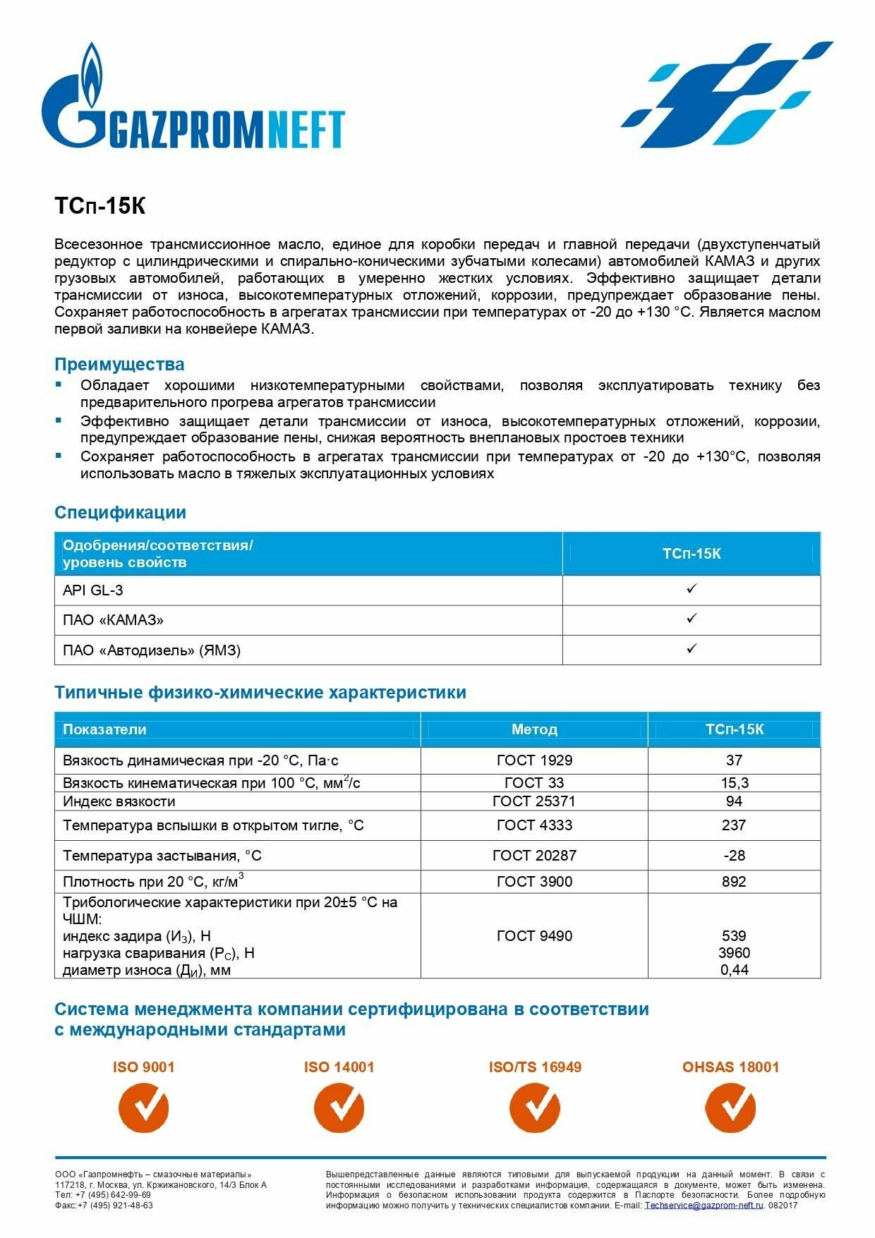 СохранитьТрансмиссионное масло GAZPROMNEFT ТСп-15К 4л интересное: