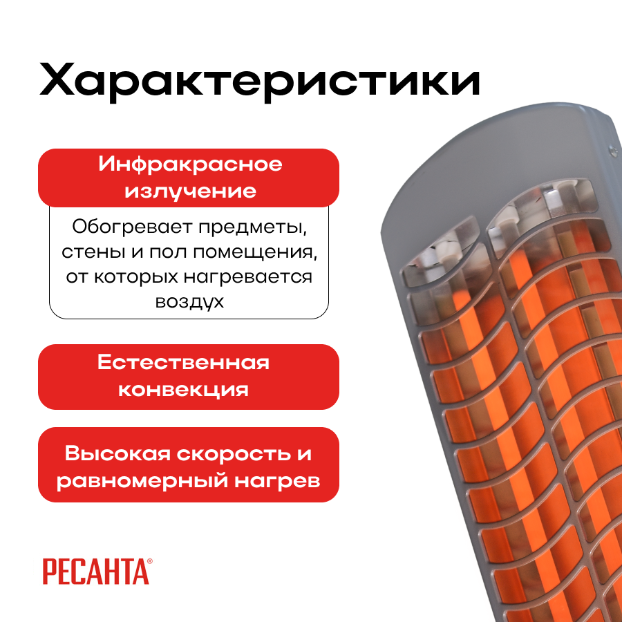 Инфракрасный кварцевый обогреватель Ресанта ИКО-1500 Л, 1500 Вт