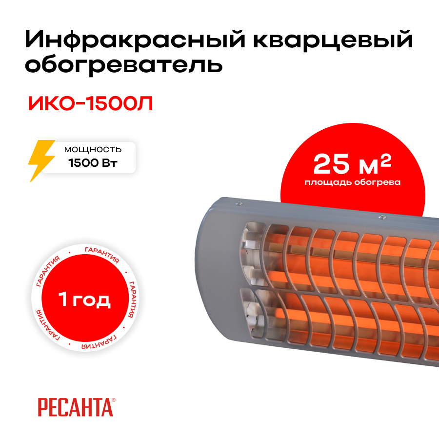 Инфракрасный обогреватель Ресанта ИКО-1500Л, 1500Вт, 25м2, кварцевый, белый [67/5/10]
