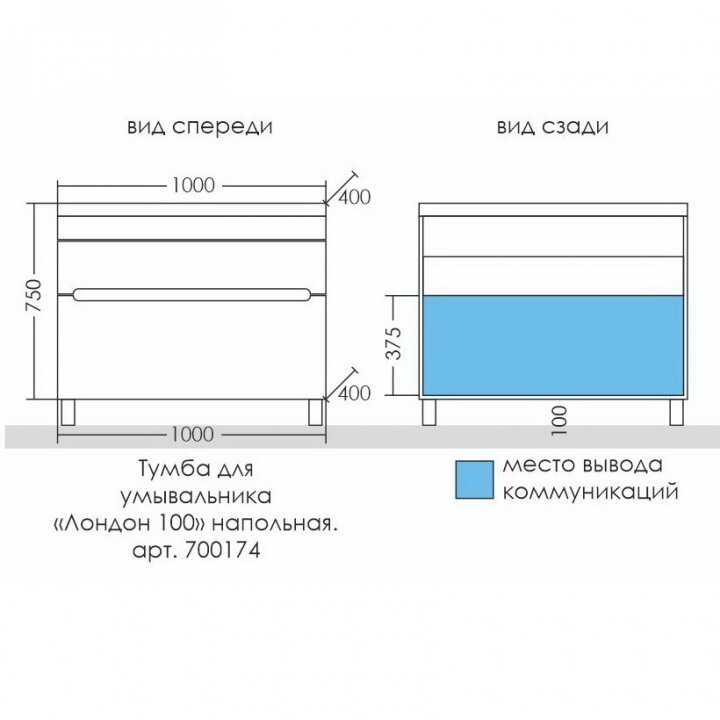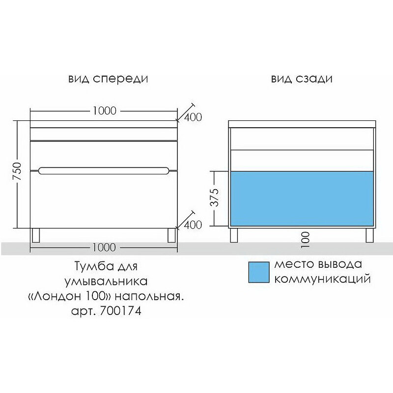Тумба напольная Лондон 100 2 ящика с умывальником Юпитер 100