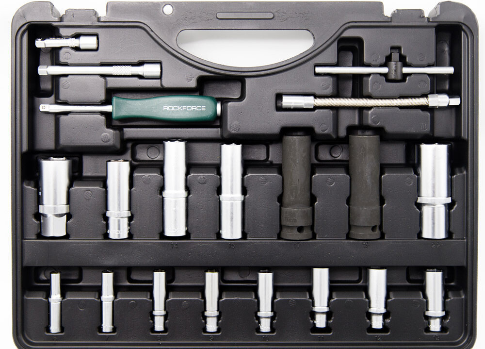 ROCKFORCE Набор торцевых головок и вставок 1/2 & 1/4DR 6-гранных RF-4941-5-PREMIUM