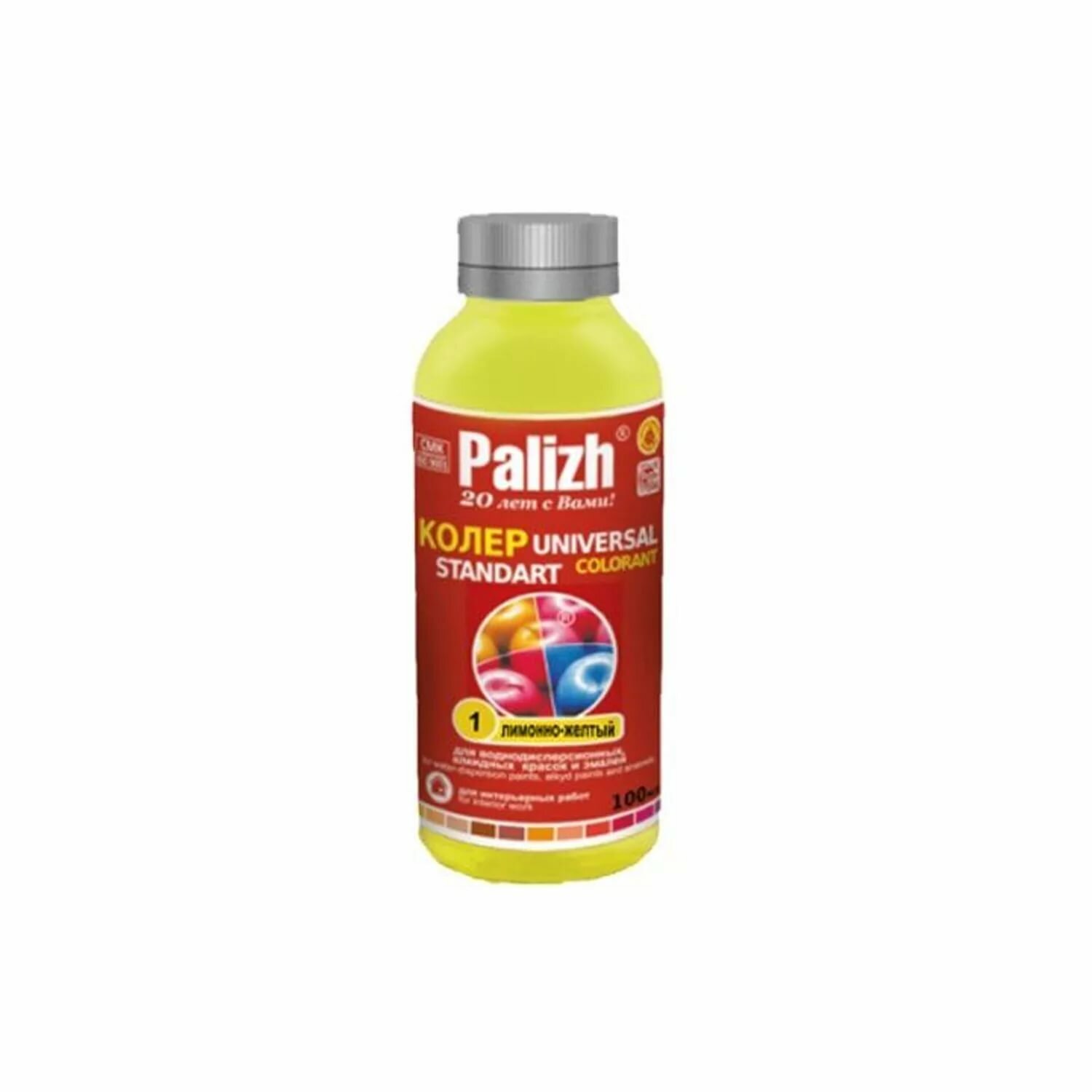 Паста колеровочная универсальная PALIZH, колер для краски, эмали, лака, ярко-желтый 100 мл