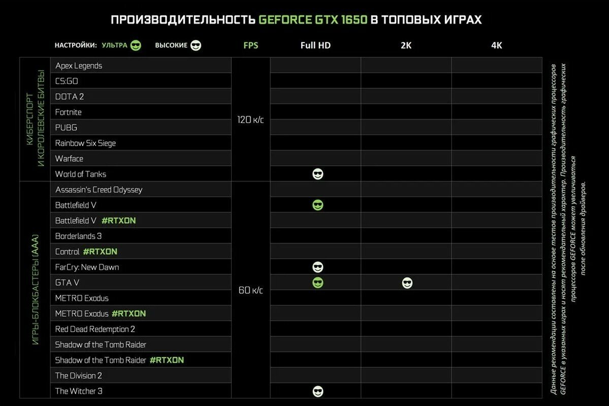 | Название видеокарты | NVIDIA GeForce GTX 1650 |