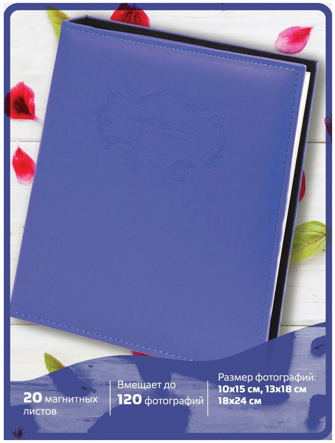 Купить BRAUBERG Фотоальбом 20 магнитных листов, 23х28 см, под гладкую кожу, на кольцах, синий, 391124