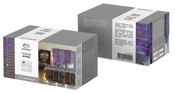 Светодиодная гирлянда NEON-NIGHT "Дождь" 2.5х2 м, 8 режимов, 300 разноцветных светодиодов, прозрачный провод