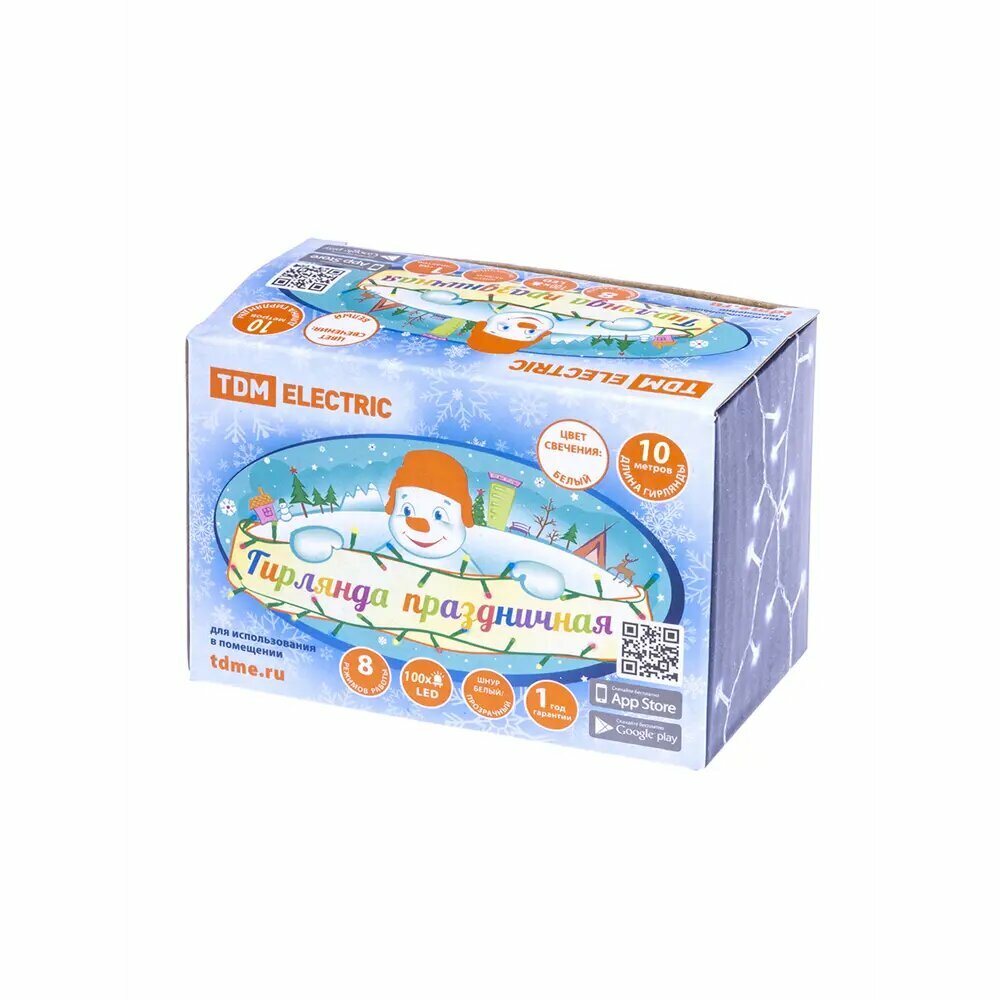 Светодиодная гирлянда TDM ELECTRIC светодиодная СГ100Б10, белая, 10м, 8 режимов, 250 В