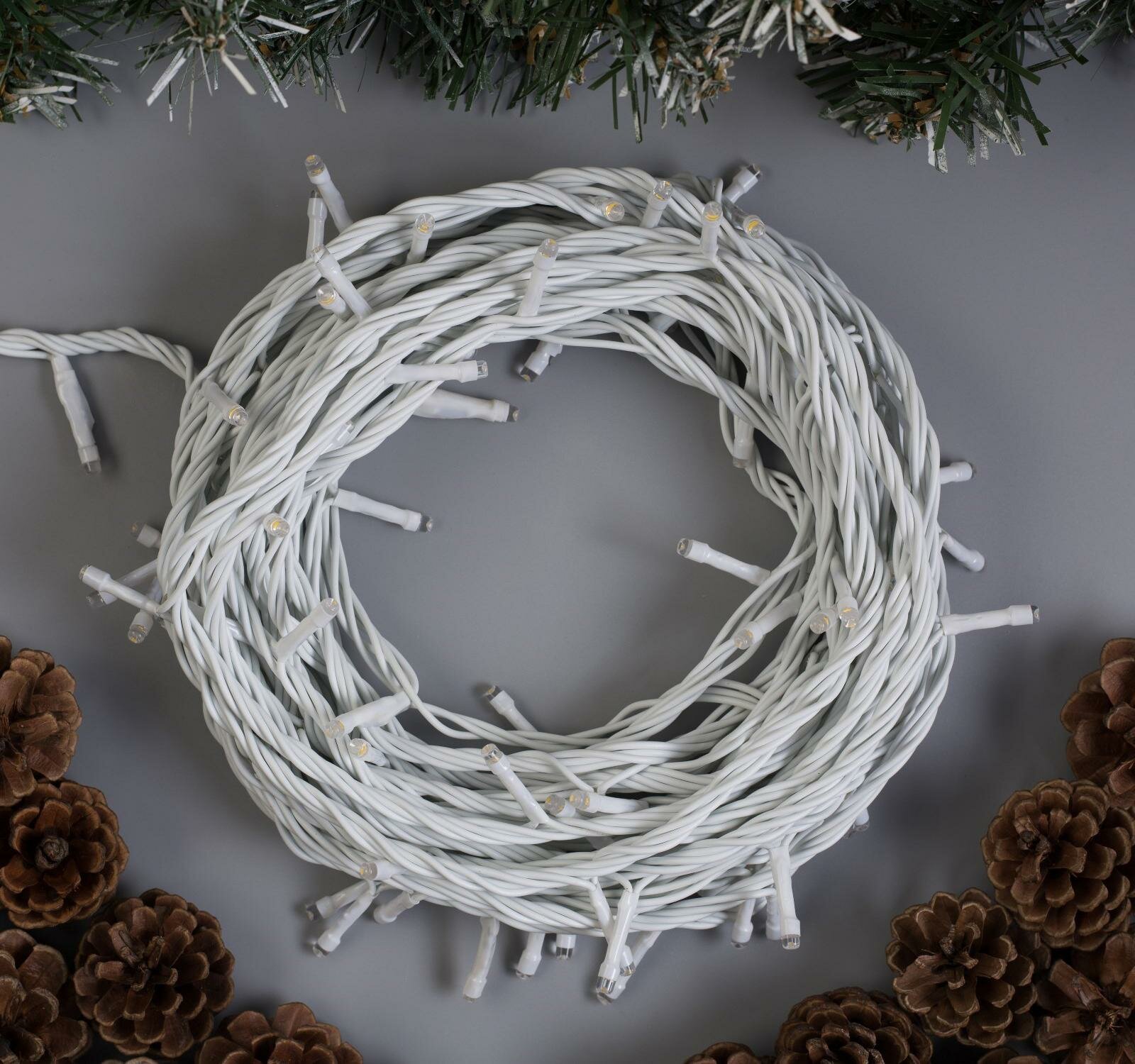 Гирлянда «Нить» 10 м, IP44, УМС, белая нить, 100 LED, свечение тёплое белое, 220 В