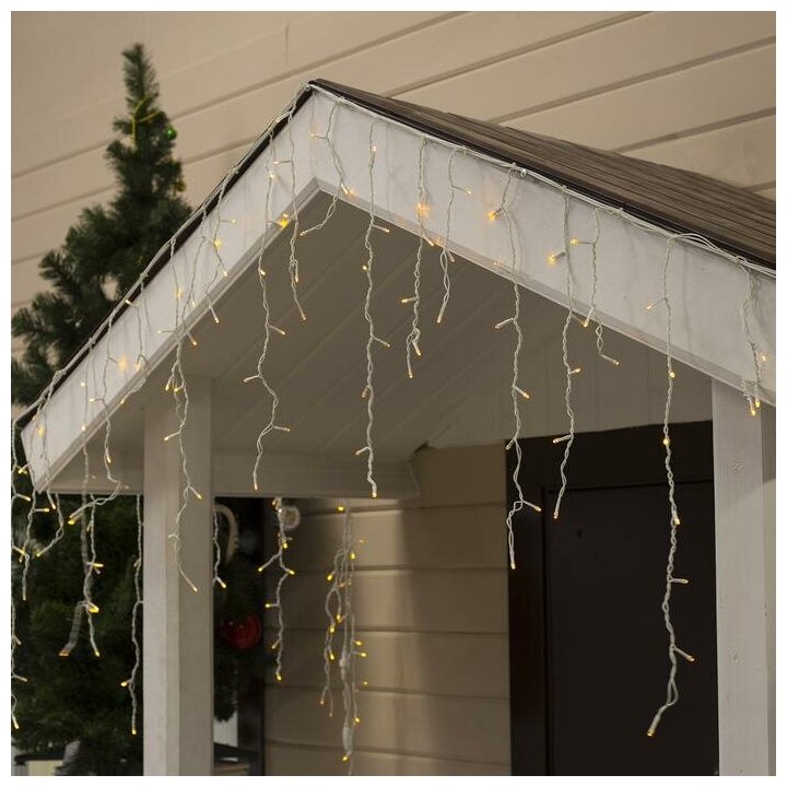 Гирлянда «Бахрома» 4 × 0.6 м, IP44, белая нить, 180 LED, свечение тёплое белое, 8 режимов, 220 В