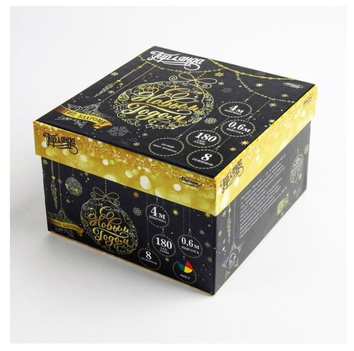Гирлянда «Бахрома» 4 × 0.6 м, IP44, тёмная нить, 180 LED, свечение тёплое белое, 8 режимов, 220 В