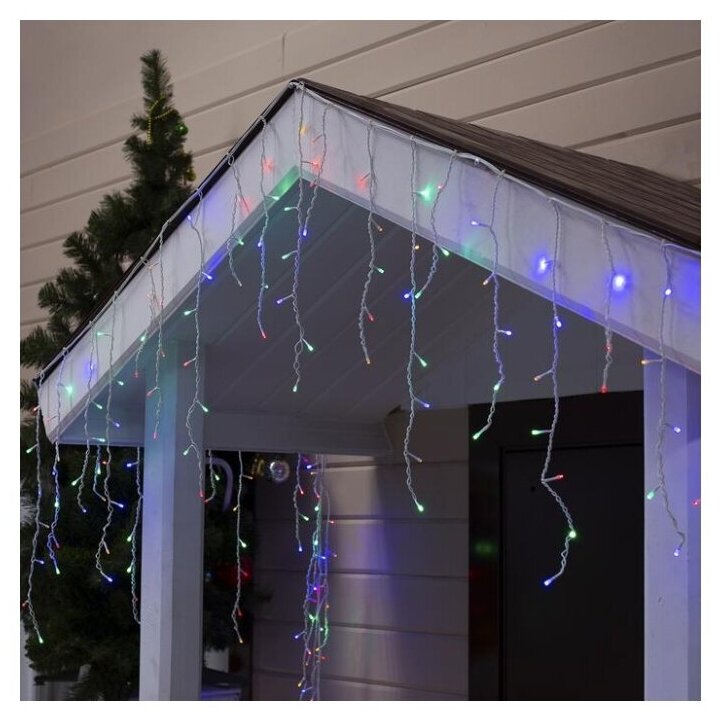 Гирлянда «Бахрома» 4 × 0.6 м, IP44, белая нить, 180 LED, свечение мульти, 8 режимов, 220 В