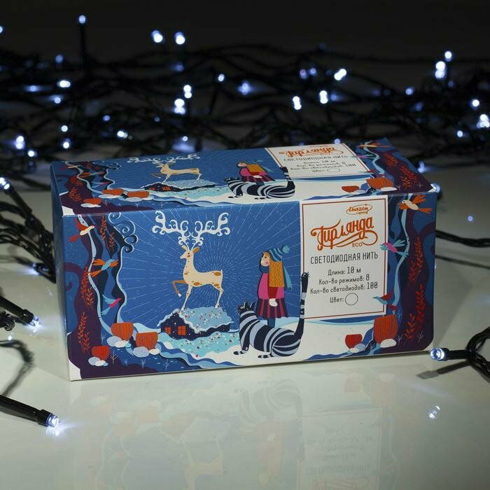 Электрогирлянда LUAZON LIGHTING Нить 10 м, IP20, 100 LED, свечение белое, 8 режимов, 220 В