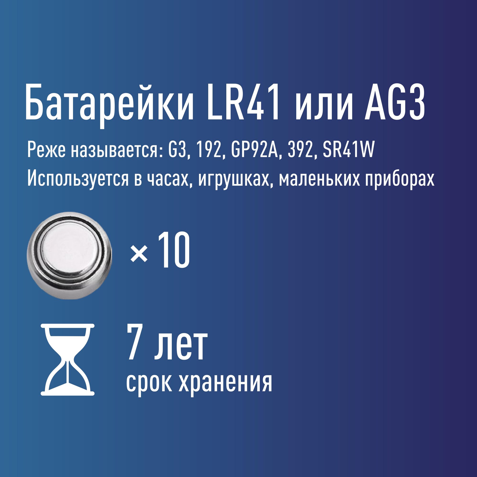 Элемент питания алкалиновый "таблетка" AG3 LR41 (блист.10шт) Космос KOCG3(LR41)10BL ( 1упак. )